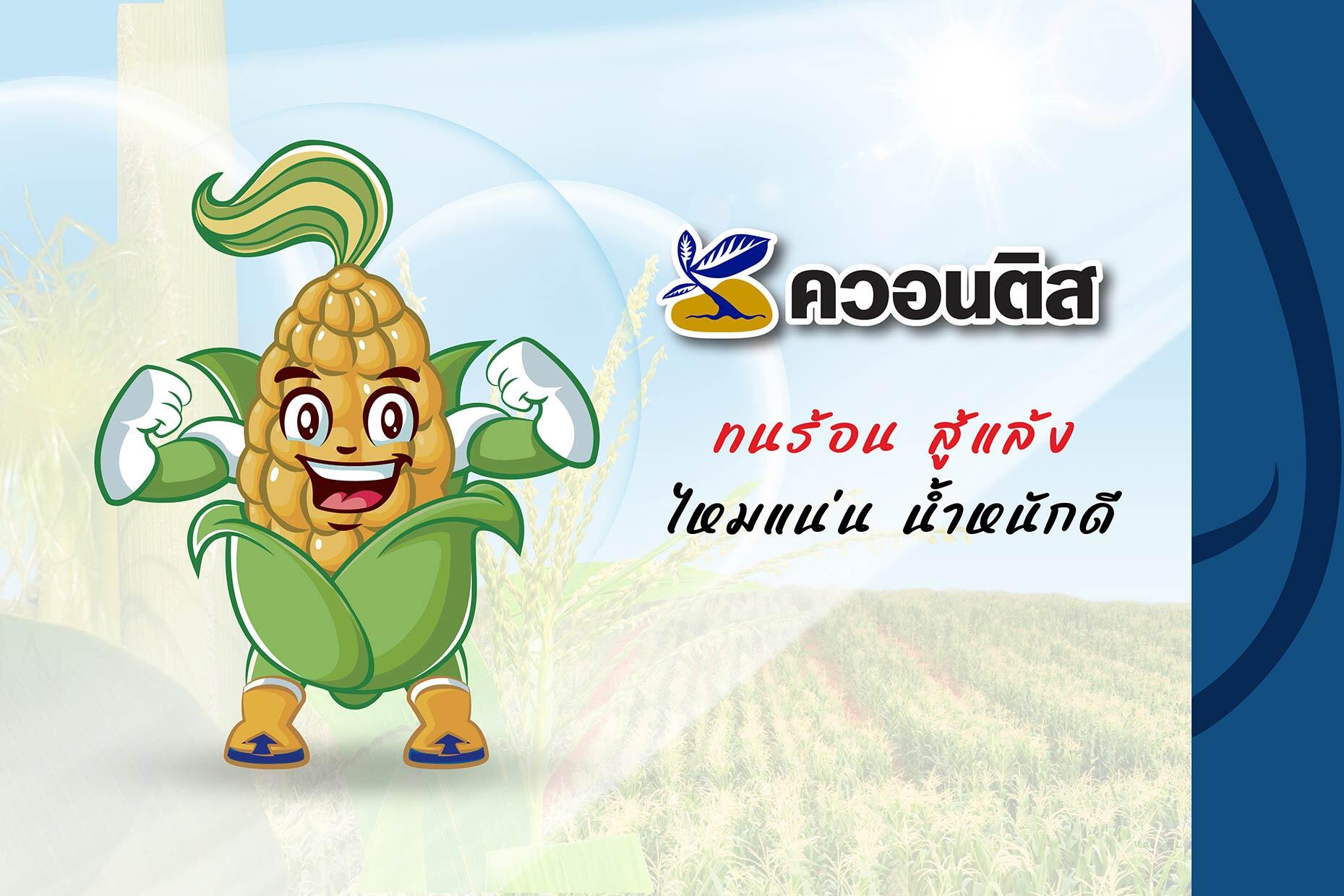 ไอเดีย : การออกแบบ Mascot ข้าวโพดให้มีลักษณะของการ์ตูนที่ Friendly ซึ่งฝักข้าวโพดจะดูอวบอิ่มและมีความสมบูรณ์ ท่าทางของมันทำให้เห็นถึงคุณสมบัติของควอนติส เช่น การดูดซึมน้ำและแร่ธาตุได้อย่างดี แขนที่เบ่งกล้ามและมีรัศมีบ่งบอกถึงความแข็งแรง และการป้องกันจากศัตรูพืชอย่างดี ท่าทางเหล่านี้ถูกออกแบบมาให้หลากหลาย เพื่อให้สามารถเลือกใช้ได้ตามสถานการณ์และวัตถุประสงค์ที่ต่างกัน
